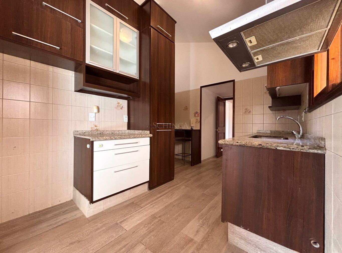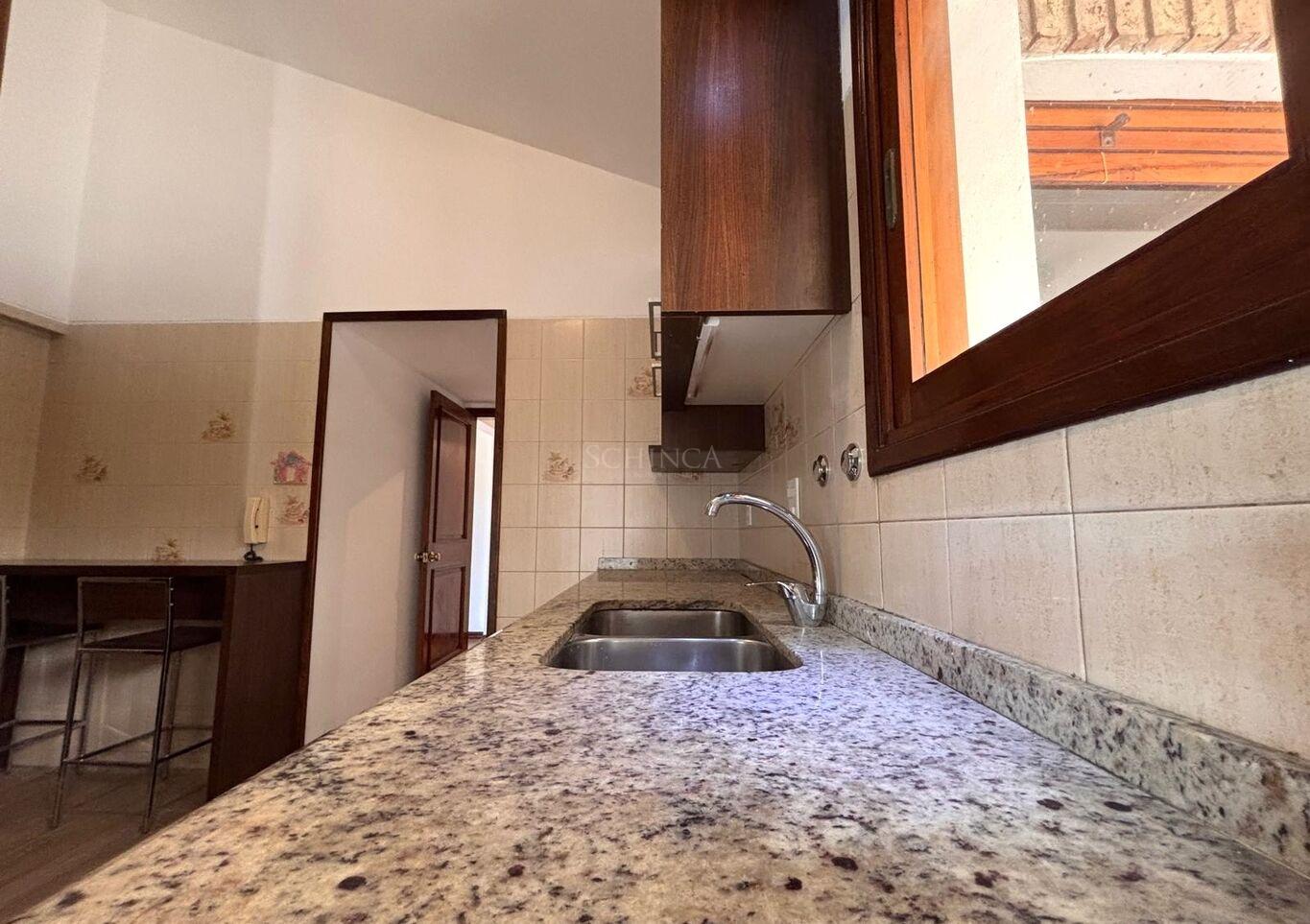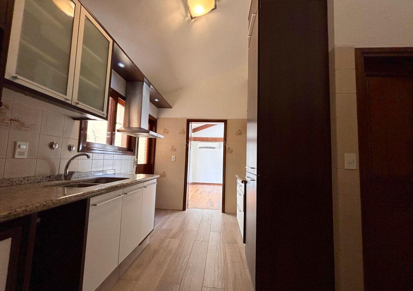 Cocina con doble mesada, armarios bajo y sobre mesada de línea moderna. La misma tiene doble circulación, por lo que se puede acceder a ella desde el comedor, o desde el área privada. Desayunador.