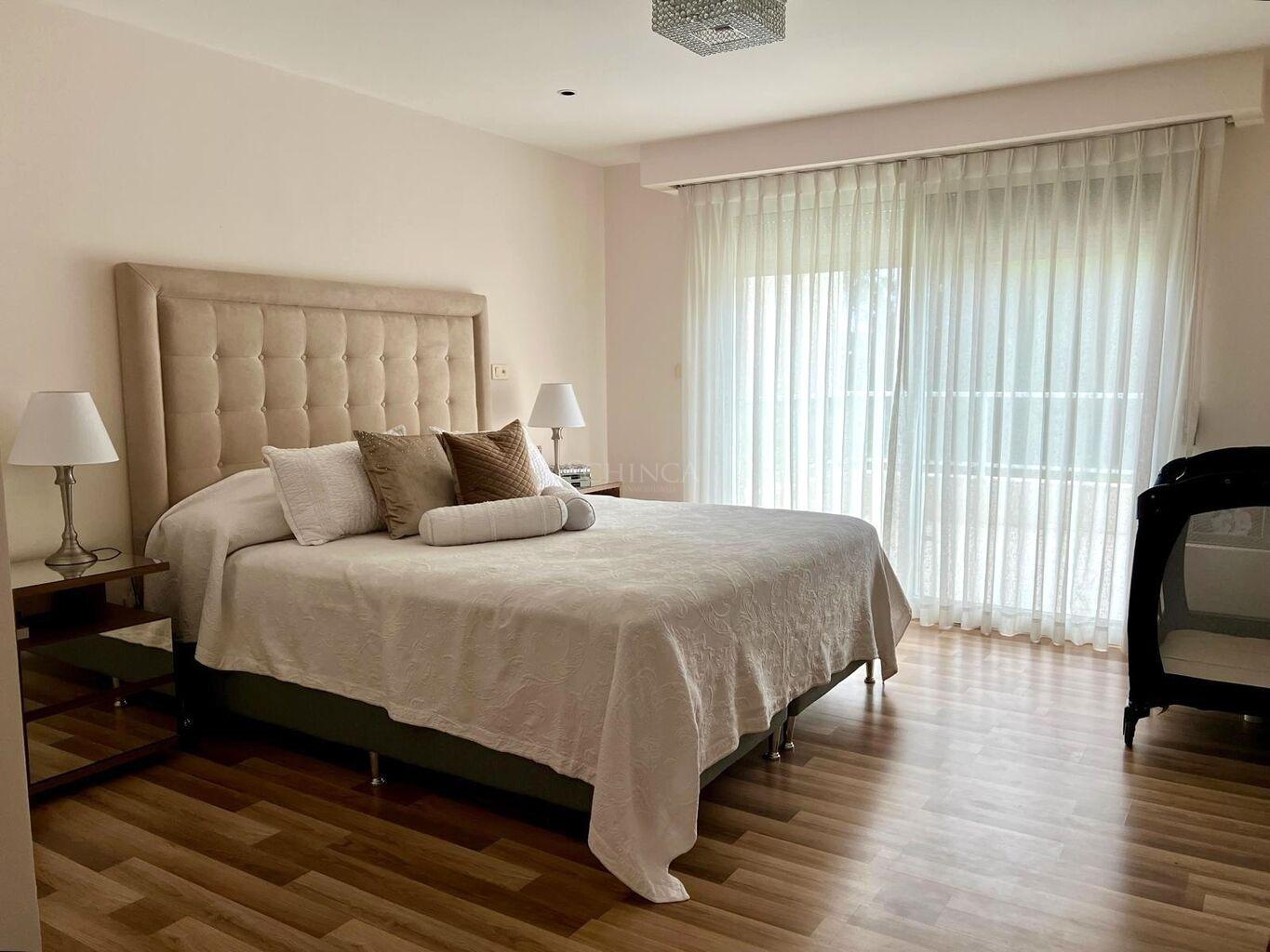 • Suite principal: baño con doble bacha, vestidor y salida a una terraza con vistas despejadas al parque y la piscina.