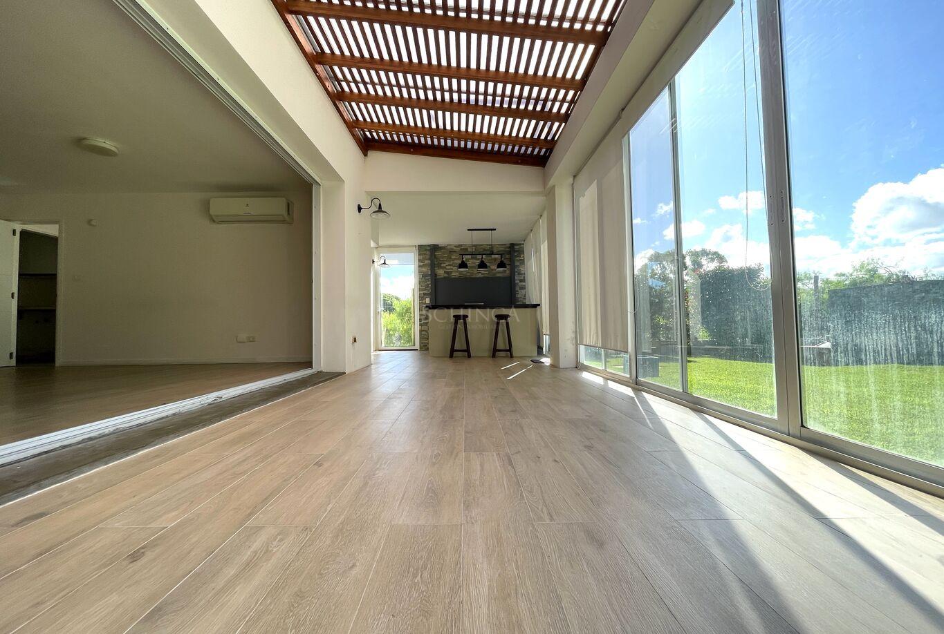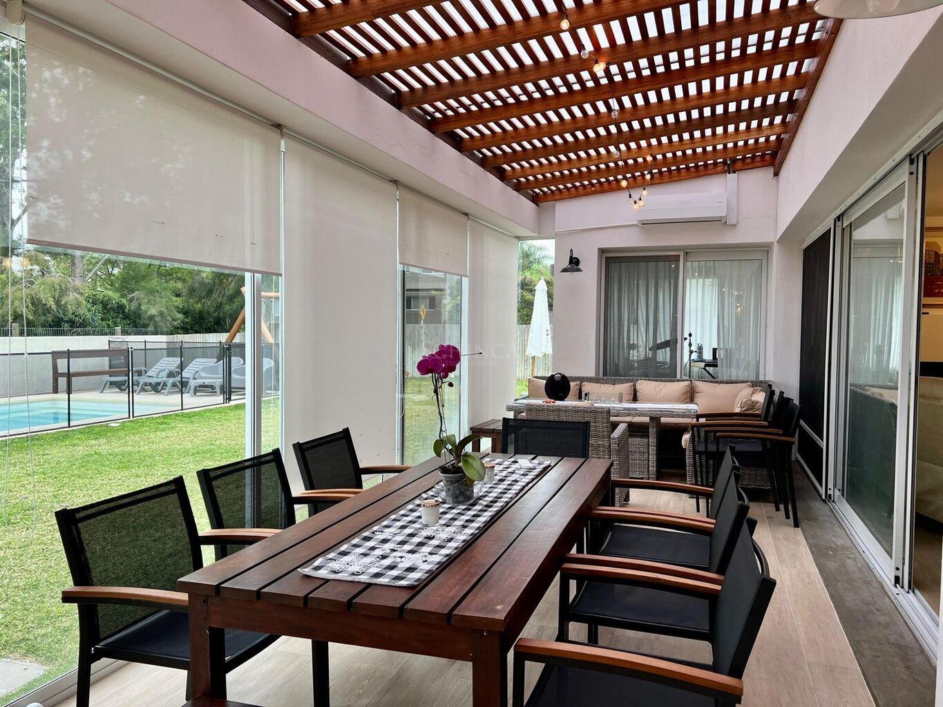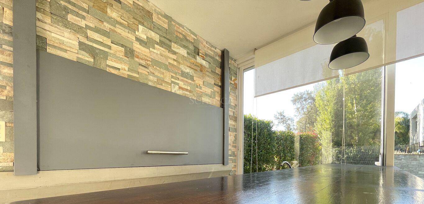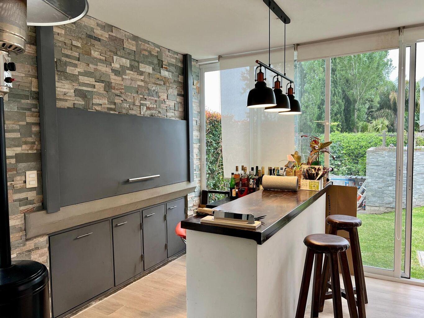 Desde el estar-comedor, se accede a la barbacoa techada , equipada con parrillero, barra y pileta, integrando el interior con el exterior de manera fluida.