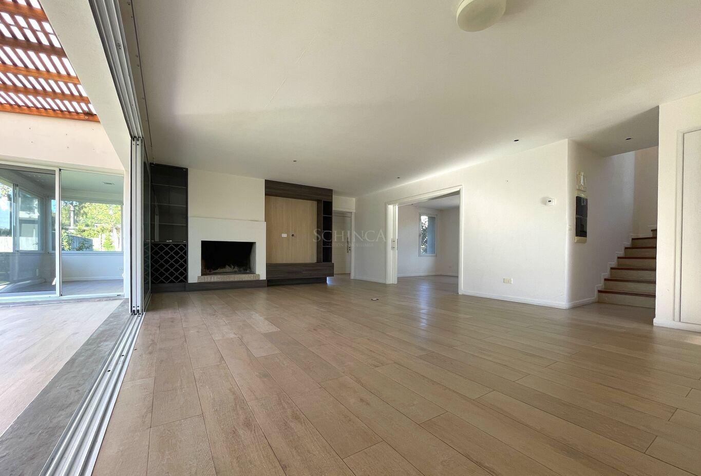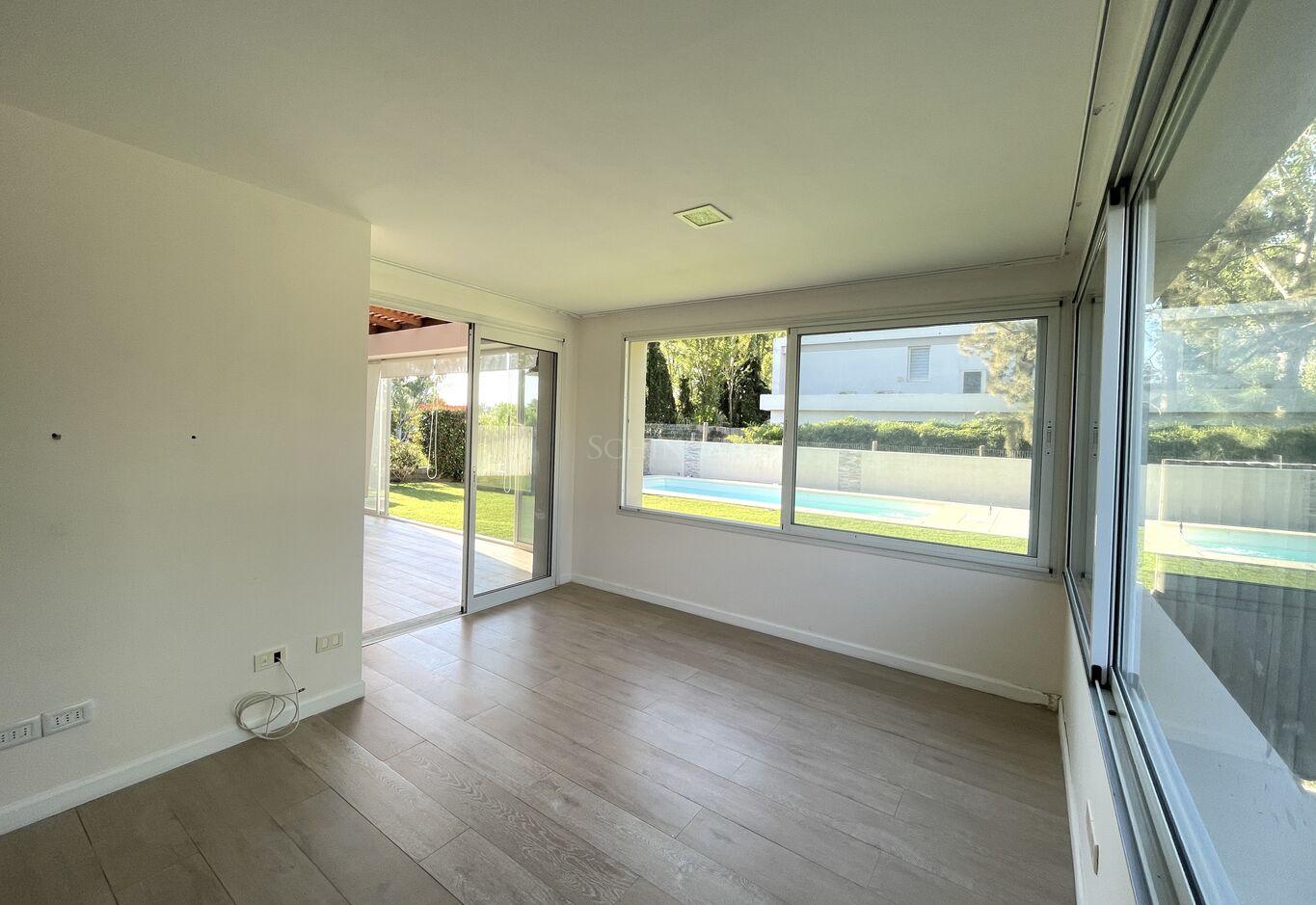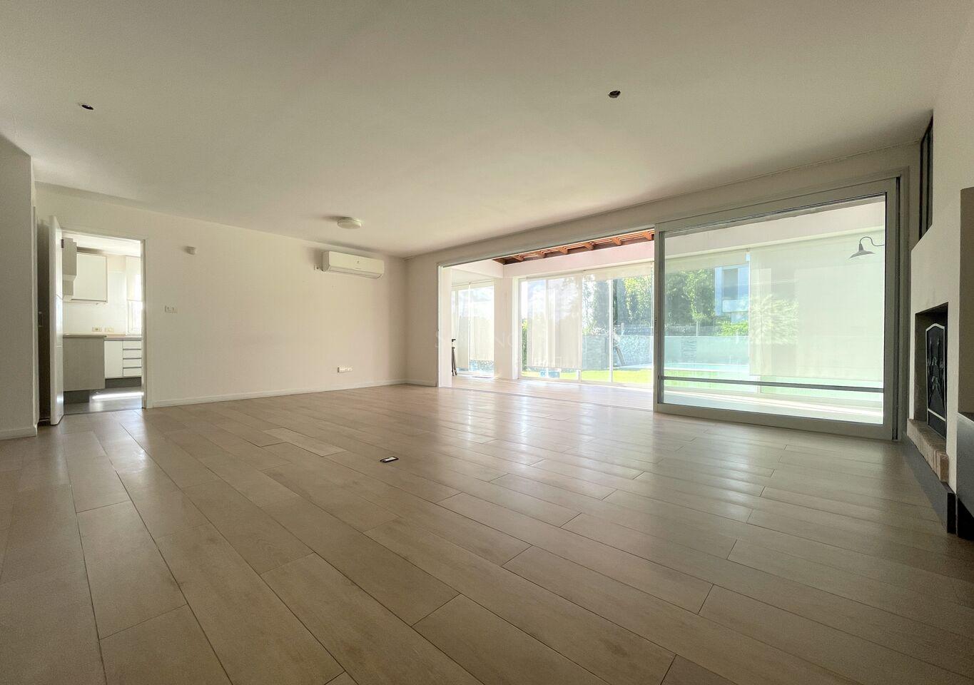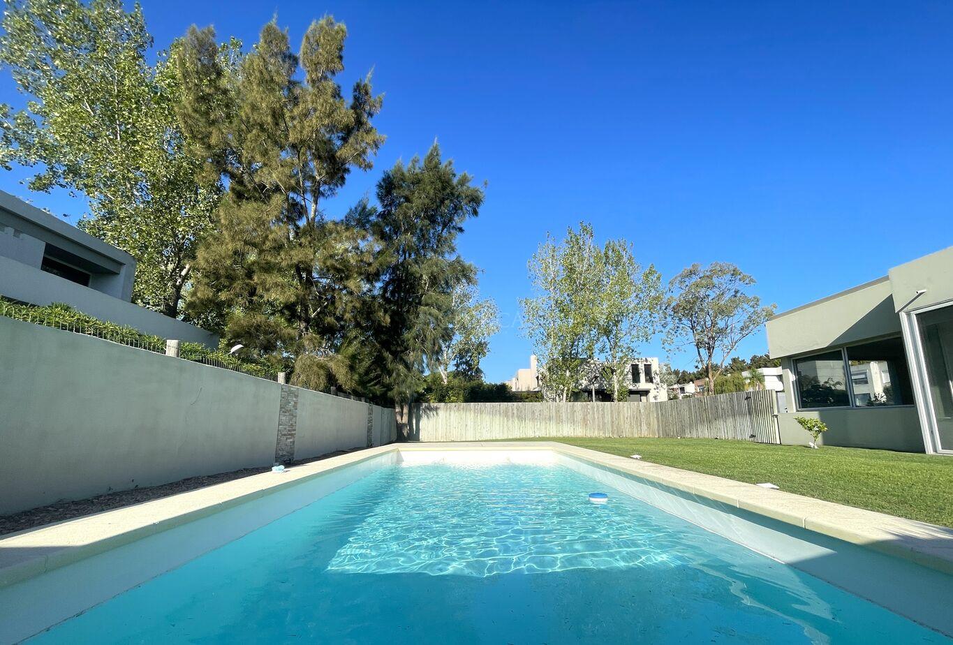 Desde el estar-comedor, se accede a la barbacoa techada , equipada con parrillero, barra y pileta, integrando el interior con el exterior de manera fluida.