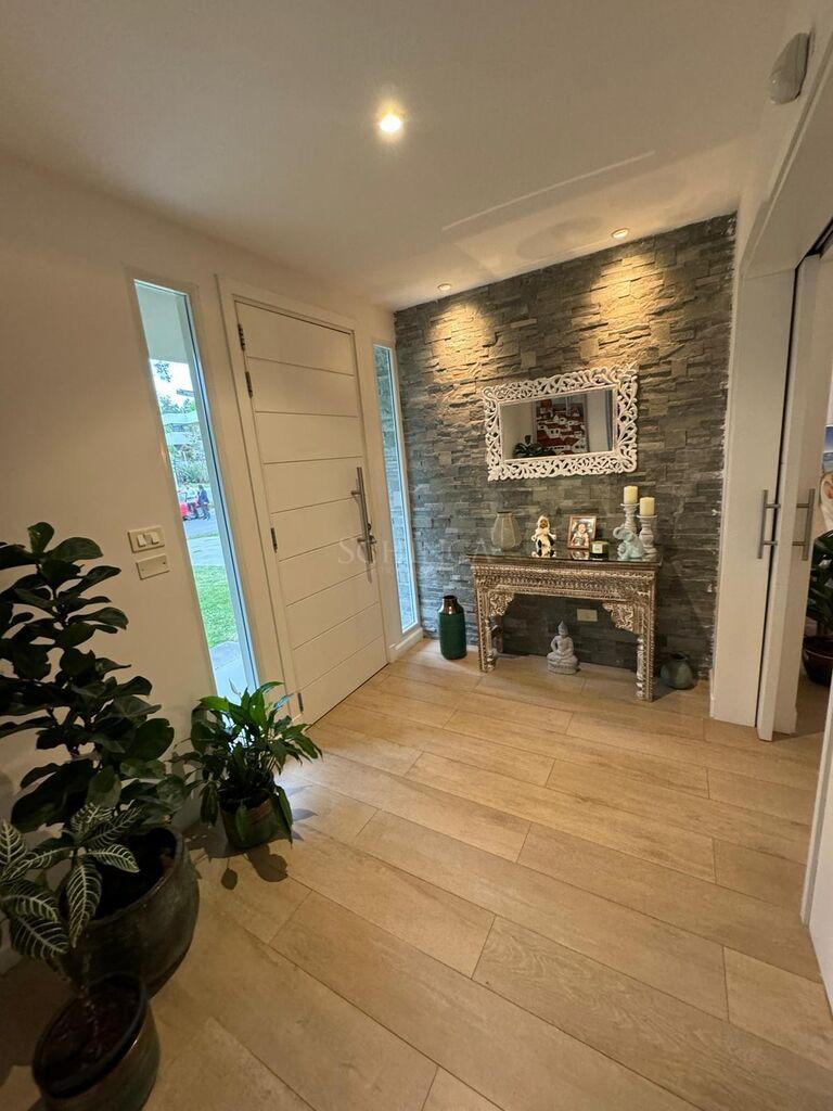 Desarrollada en dos plantas, cada rincón de la casa ha sido diseñado para optimizar la luz natural y la fluidez de los espacios. Sus amplios ventanales permiten una conexión armónica entre el interior y el exterior, brindando una sensación de amplitud y calidez.
